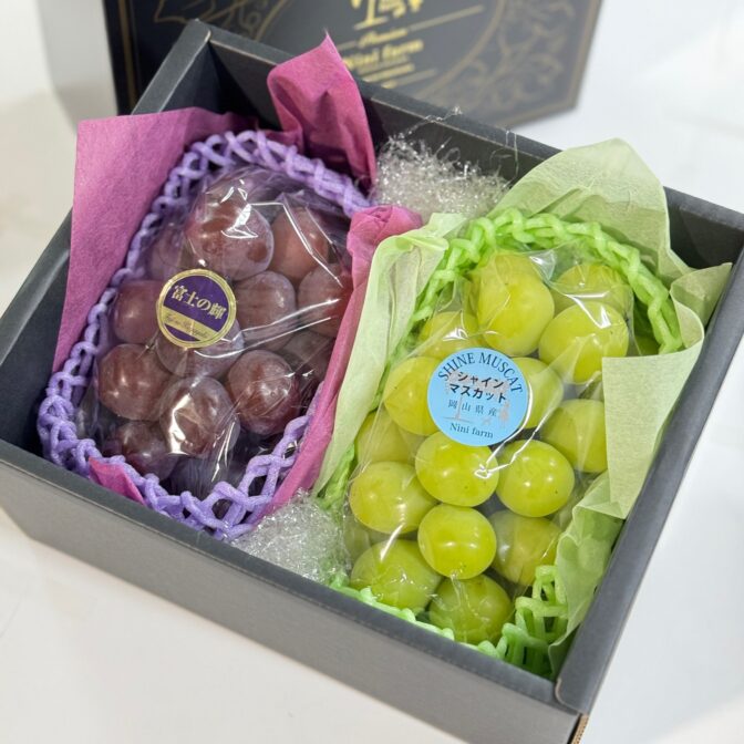 Nini farmで栽培した葡萄の中でも、味はもちろん、見栄えの良い葡萄を厳選して詰めております。お中元やお祝いなどのギフトに最適な商品です。